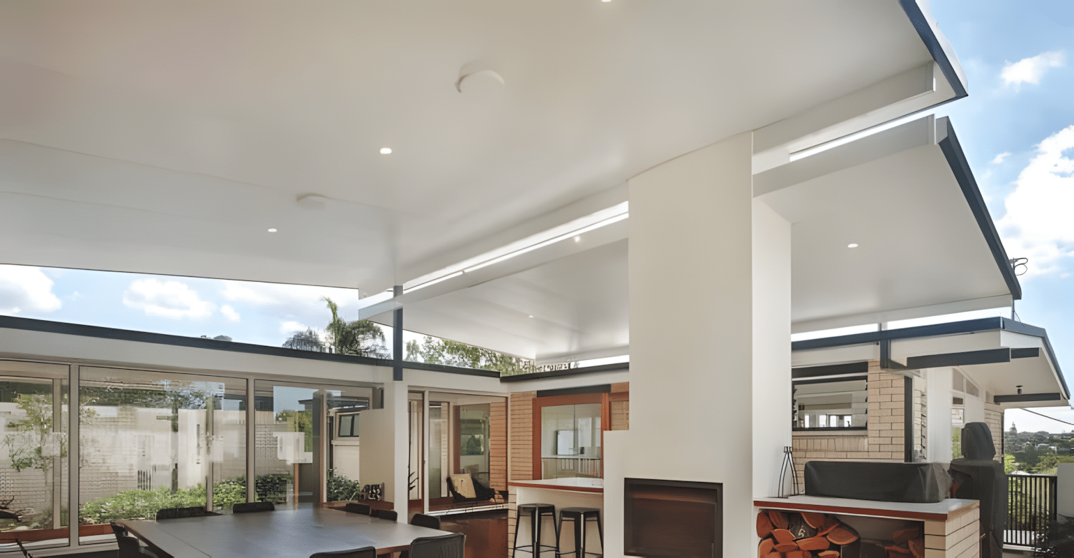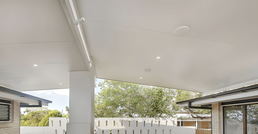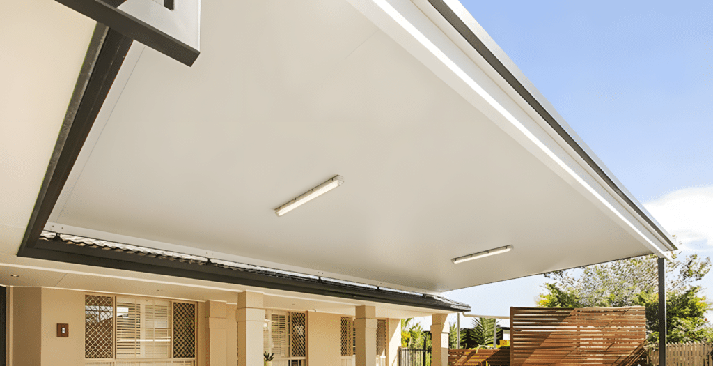 Thanks to the high levels of strength and durability, insulated roofing panels require less support than single-skin roofing. The reduction of supporting rafters results in a cleaner, more streamlined appearance compared to a conventional single-skin roof. Because the external roofing layer provides structural rigidity, the ceiling layer is flat. This further adds to the clean, uninterrupted lines that make insulated patios so desirable.