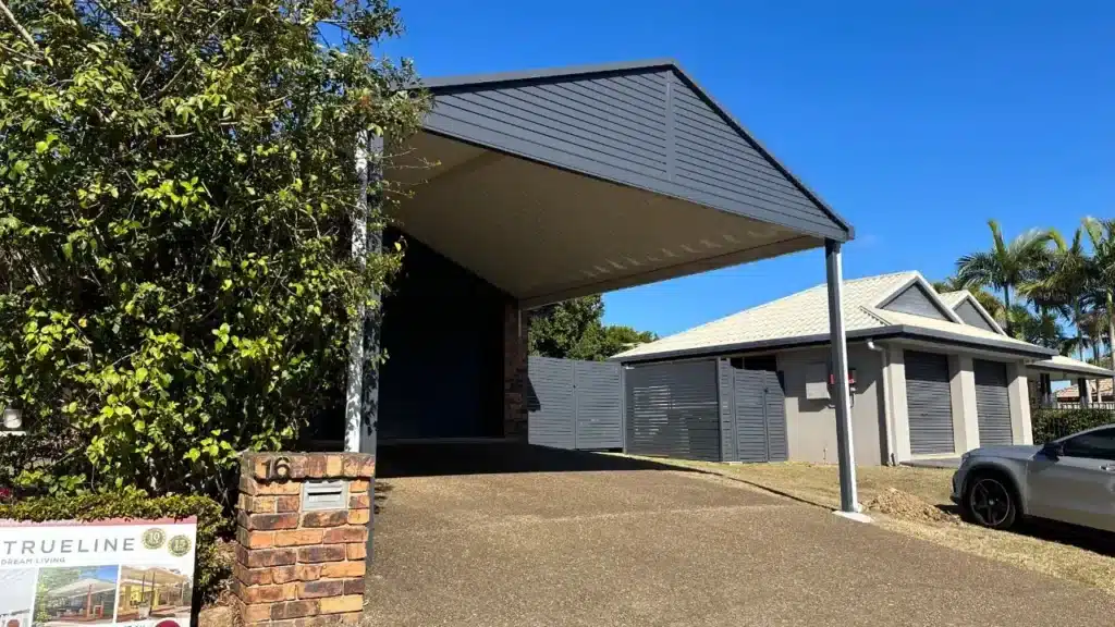 This design uses a gable roof made of our ever-popular Coolskin roof panelling. The gable pitch or angle was chosen to match the existing lines of the home.