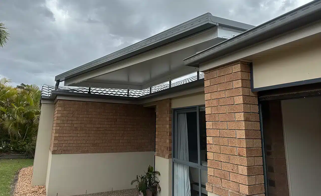Insulated outdoor roofing is gaining popularity in a range of applications. We often see insulated panels used for carports on the front of homes and offices. This entrance patio in Flinders Views is an example of clever design and strategic materials choice to add function and protection to the front entryway of a home.