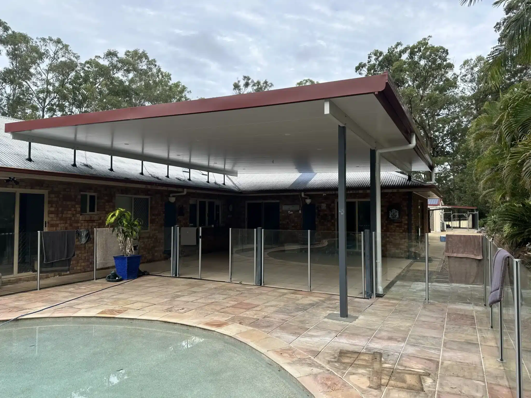 Measuring in at 10m x 8.5m, the new roof extends into the pool area offering a shady place to relax between plunges. For this project, the post count was reduced from 5 to 3 despite increasing the covered area.
