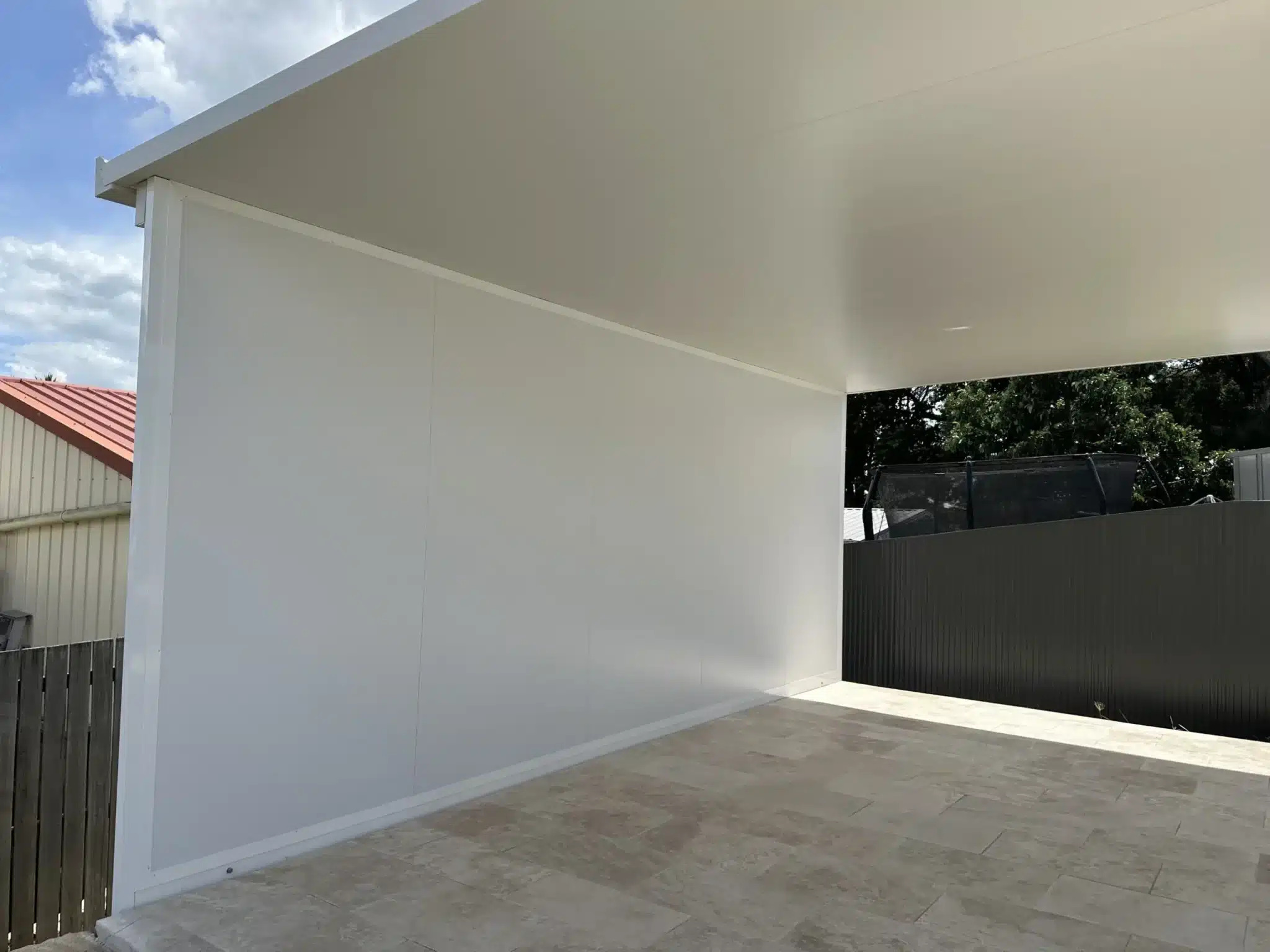 With careful consideration, our clients chose the crips surfmist colour for all components from posts, supports and insulated roofing panels.