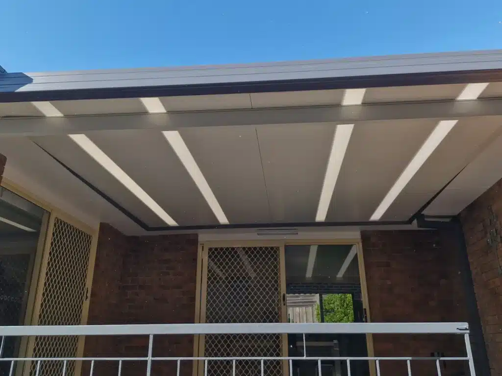 Featuring 55mm thick insulated panels, the new verandah roof is 4.13m wide and 3.4m deep offering plenty of useable outdoor space. The opaque Naturelite inserts ensure natural light is available, even during the shorter winter days.