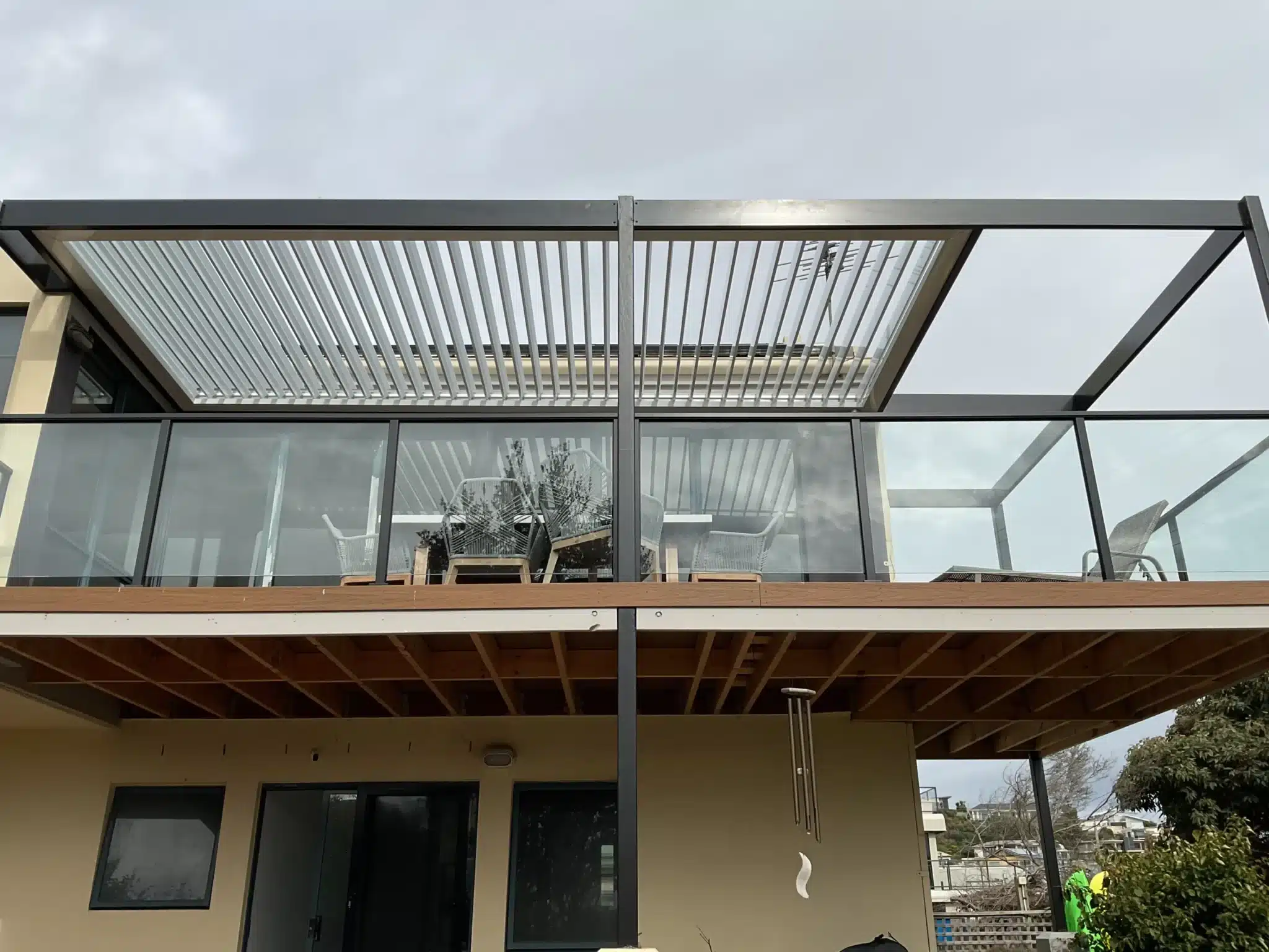This project consists of 2 parts, the first is an opening roof patio that measures 6.2m x 2.8m. The second is the open pergola which sits over the smaller side of the balcony at 5.1m x 1.9m. Both are wall-attached and make use of the existing posts following a freshen-up.