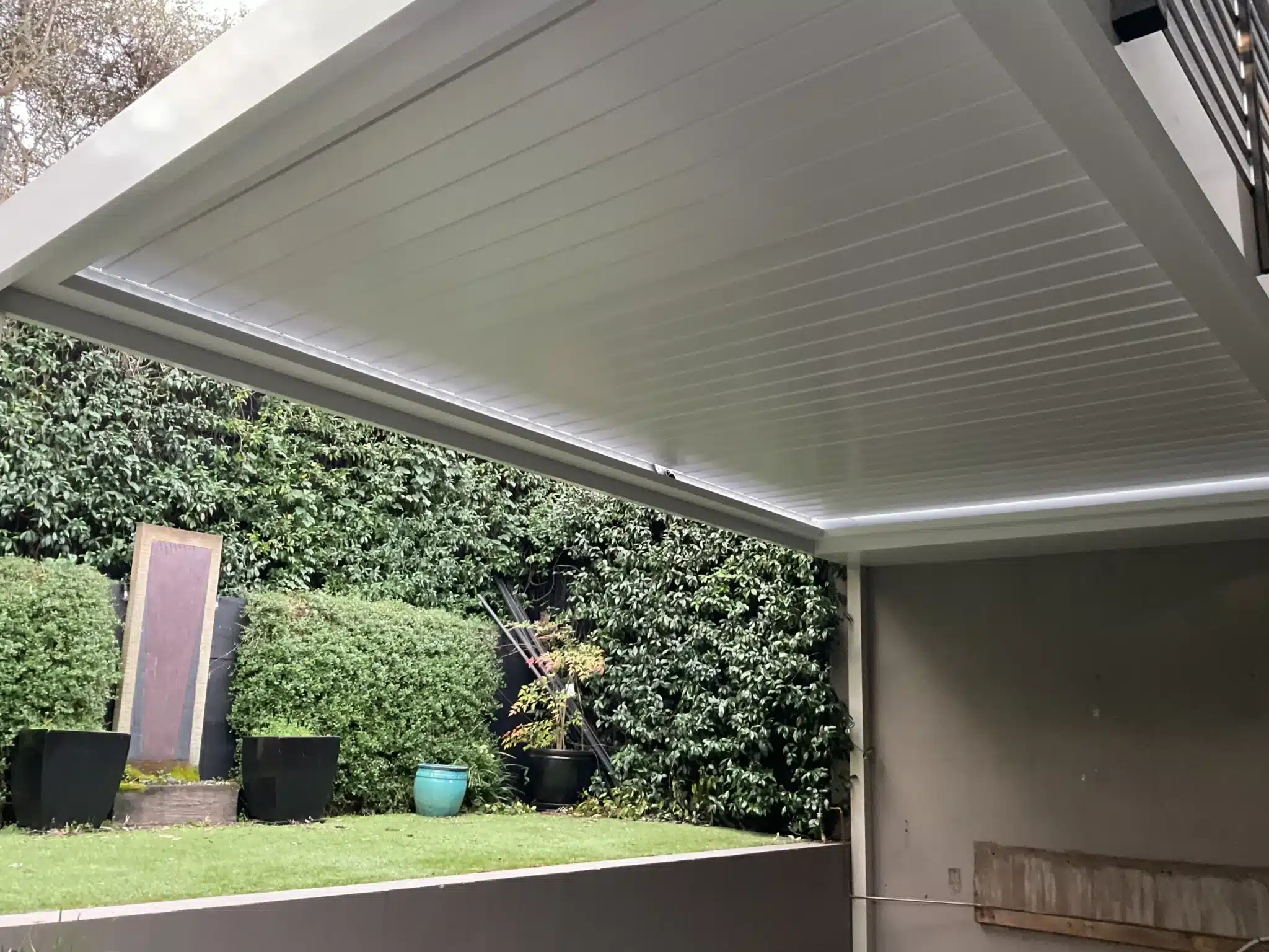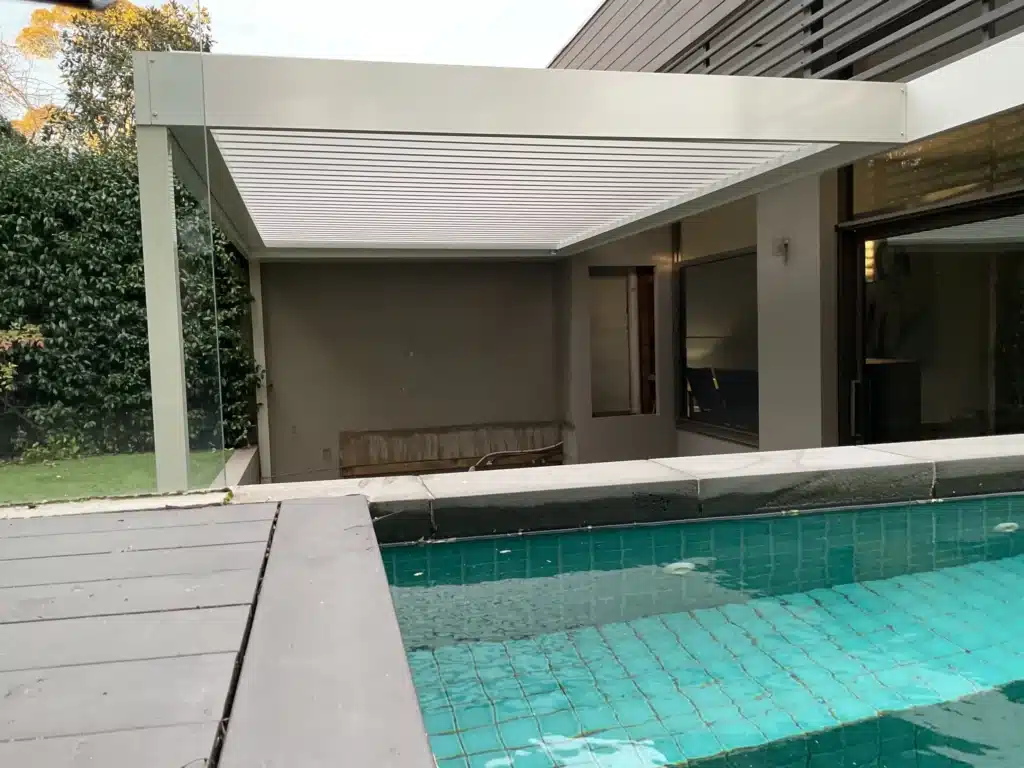 Overlooking the pool, the new patio measures 5.7m x 3.2m and is supported by 250mm beams that are precisely matched to the home’s exterior. The subtle Evening Haze colour-coding is purposeful and matches the home and tiling perfectly. The Surfmist-coloured roof and ceiling maximise natural light regardless of how the opening roof is adjusted.
