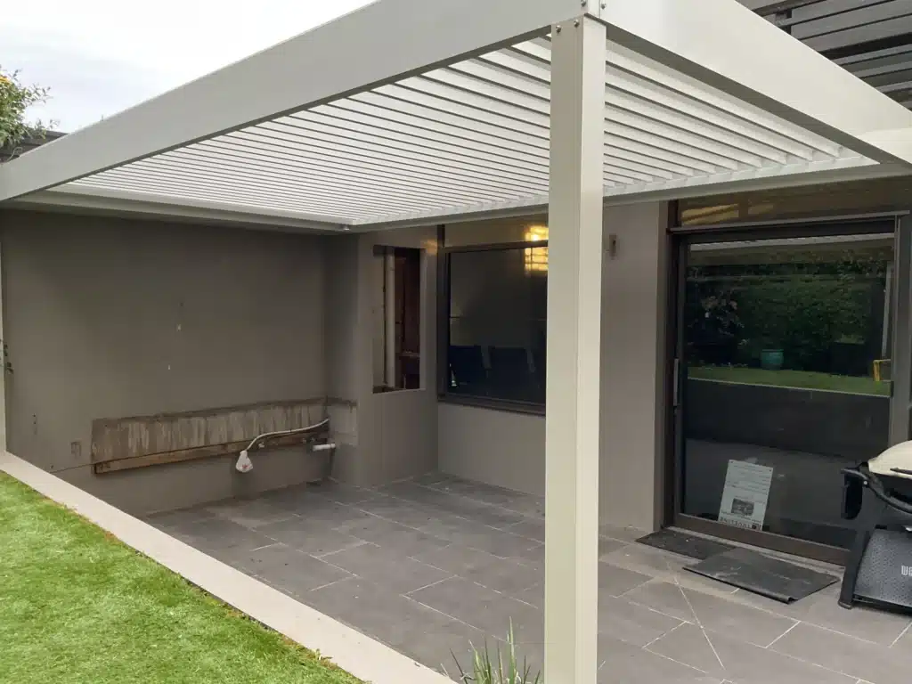 Armed with the knowledge that creating delicious meals was of importance, our designers made sure the new louvred patio was well equipped for an outdoor kitchen. A 600mm bulkhead was added above the cooking area and will feature LED downlights and a range hood.