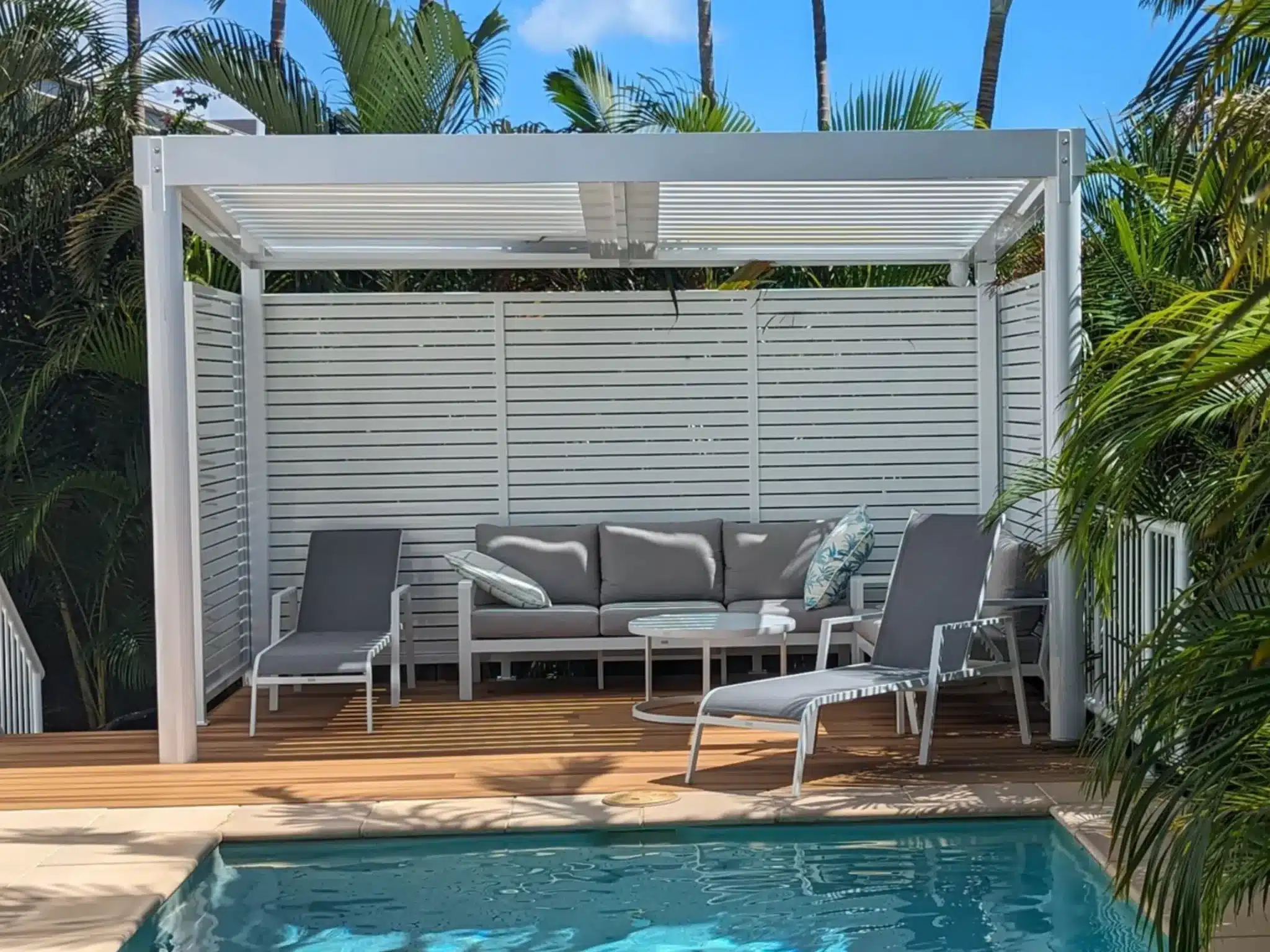 This stunning opening roof cabana is hot on the heels of our last insulated poolside cabana. Our lovely customers in Sunshine Beach opted for a different approach to staying cool while poolside.