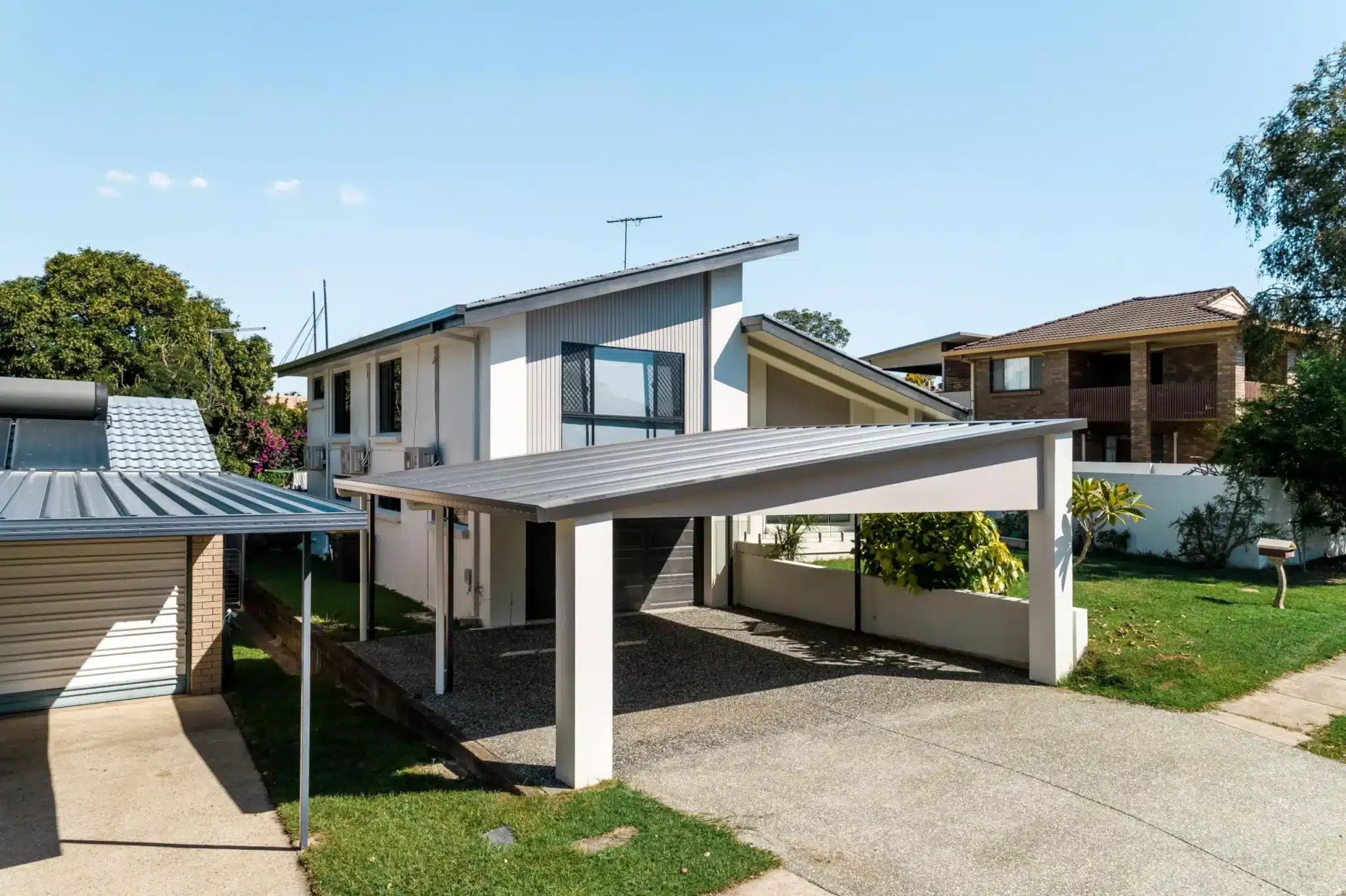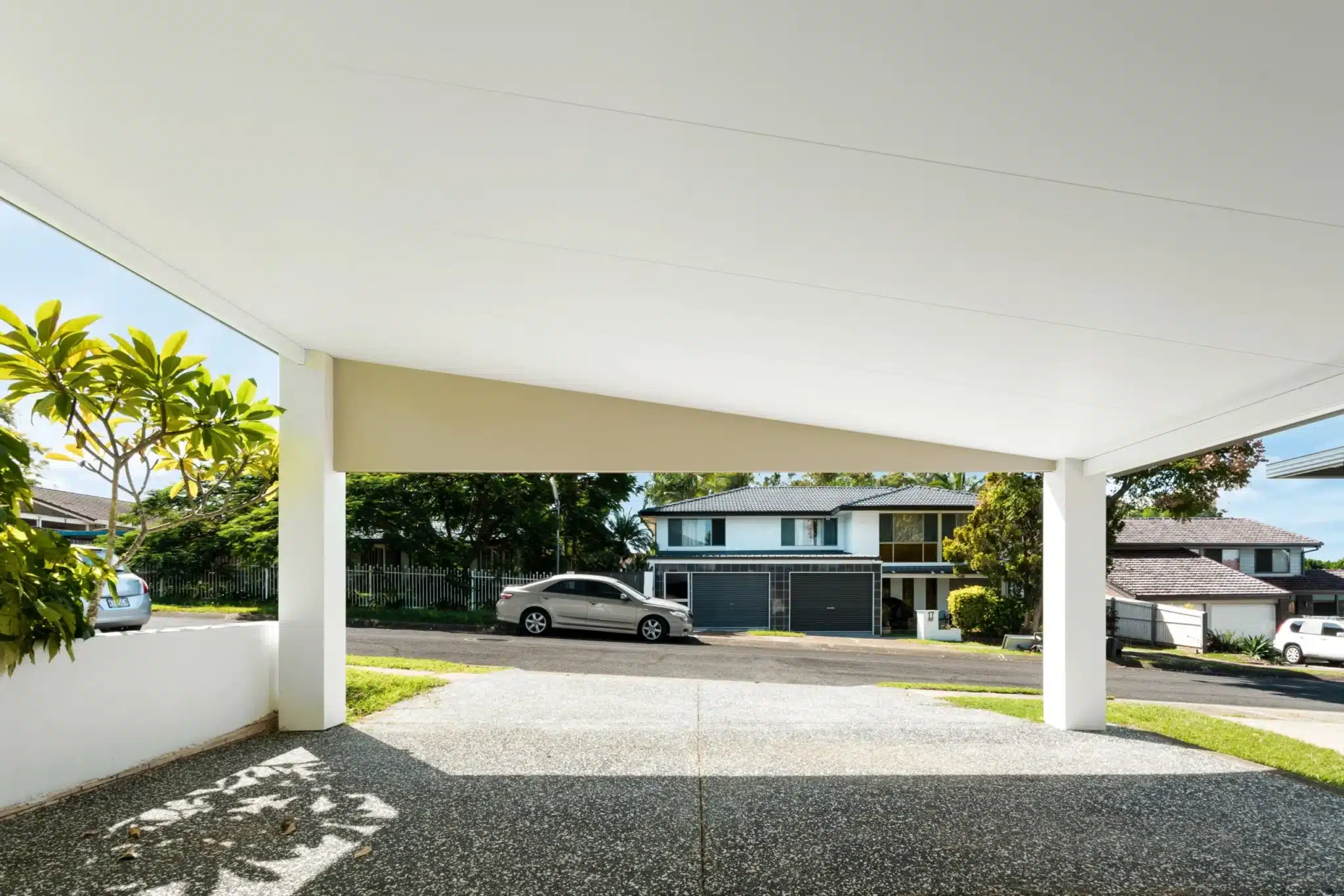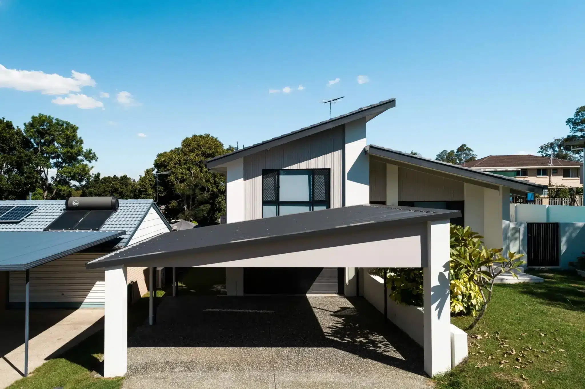 Design by our Brisbane team, the rendered and insulated carport was inspired by the new exterior of the home.