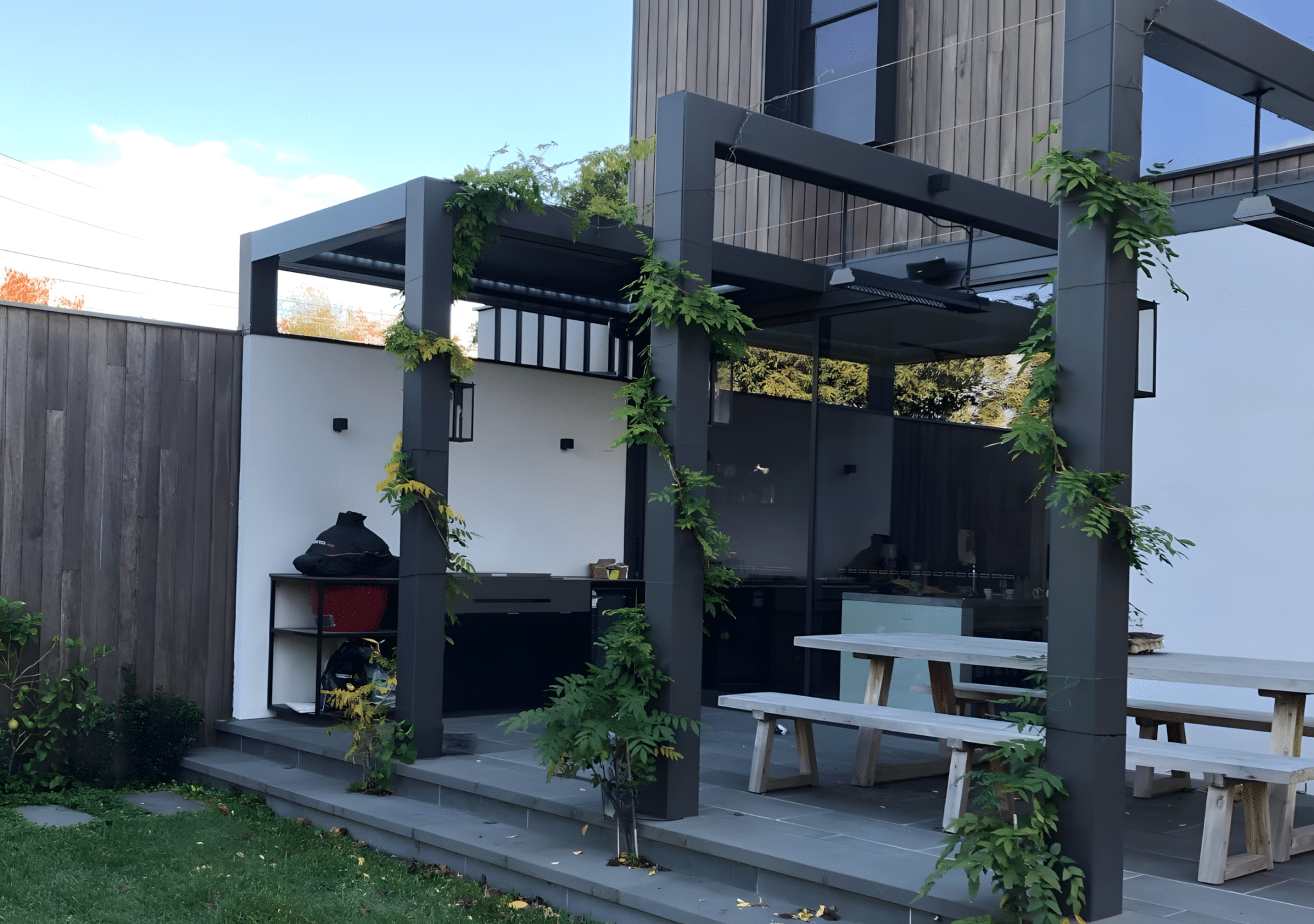 A pergola room is often an enclosed space with an open Pergola roof and walls, offering a protected place to utilise without concerns around windy weather conditions.