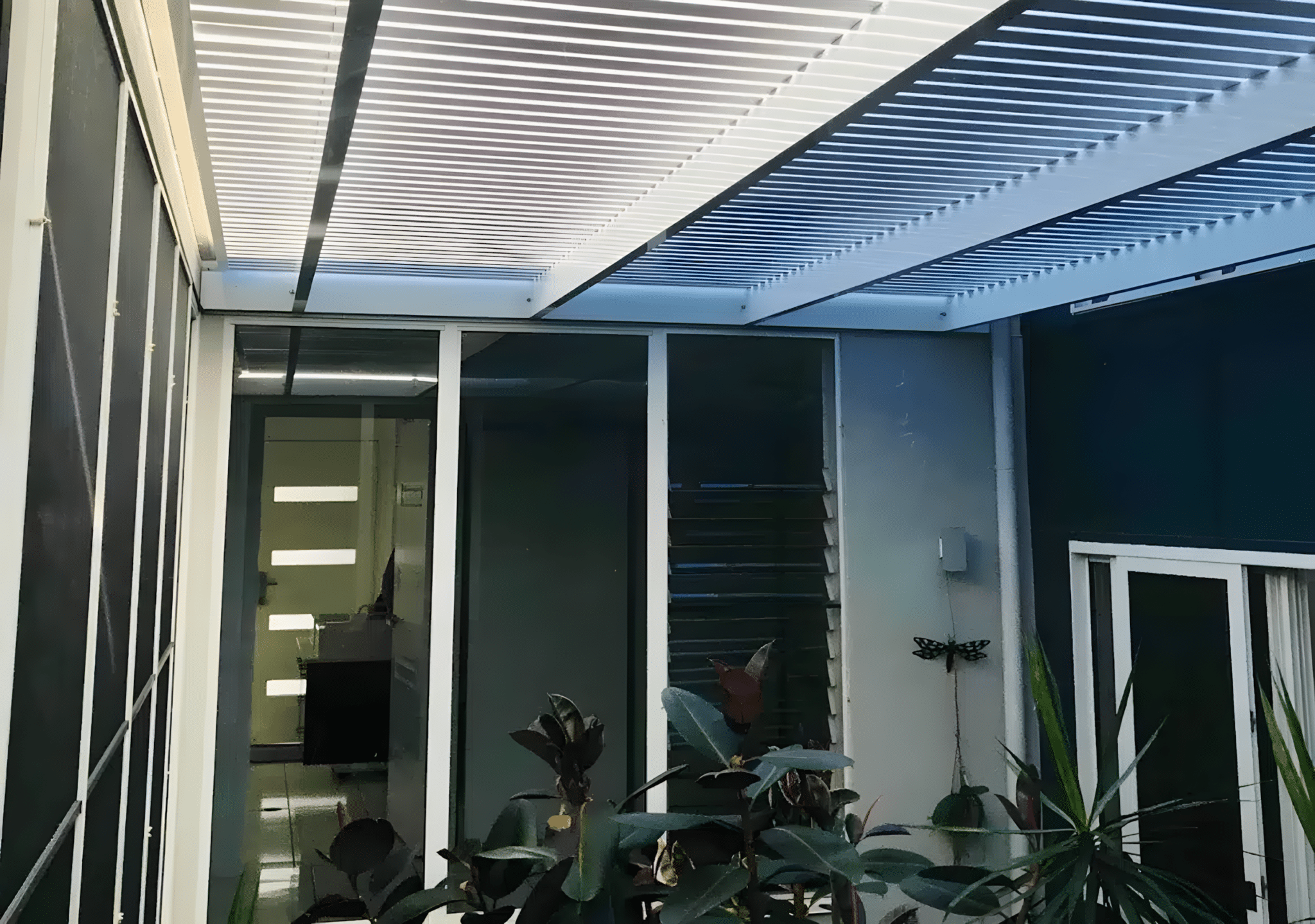 A louvered pergola is a modern pergola with adjustable louvered blades as the roof, enabling you to control the amount of natural light and airflow that enters the area.